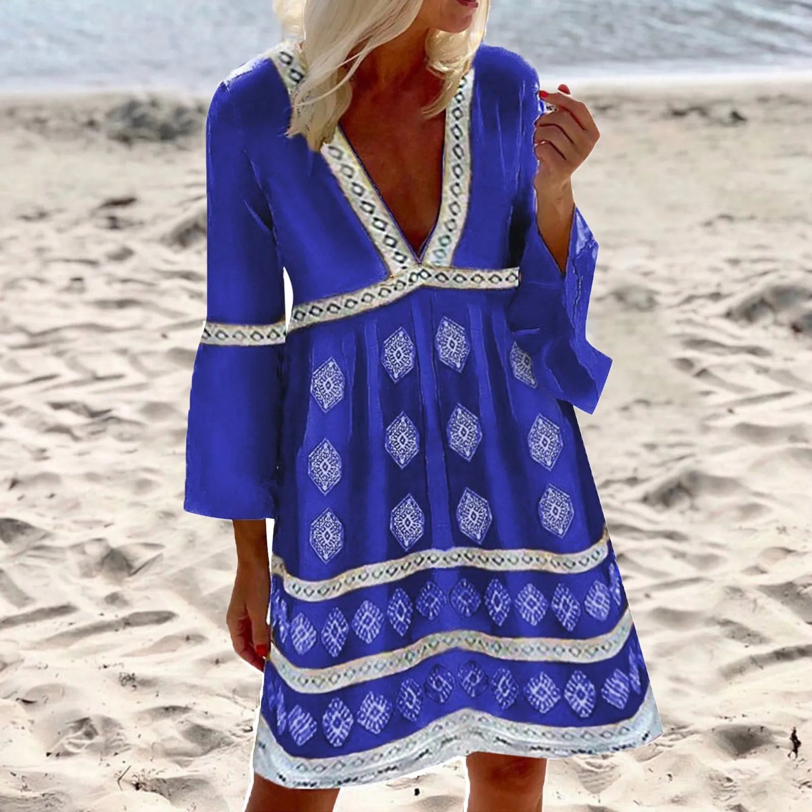 Boho Summer Cotton Dress for Women – O-Neck, Long Sleeve, Knee-Length, Plus Size Casual Sundress