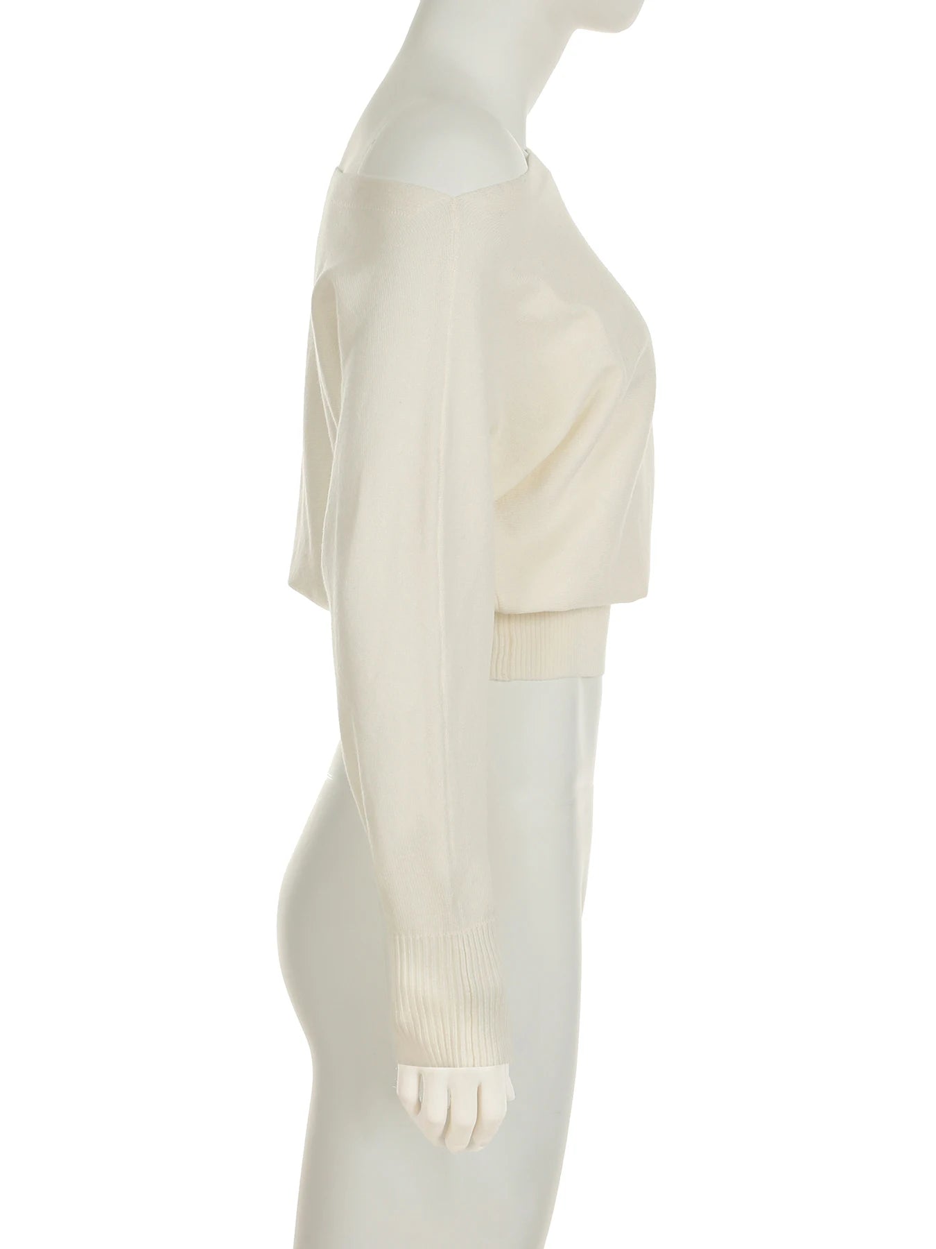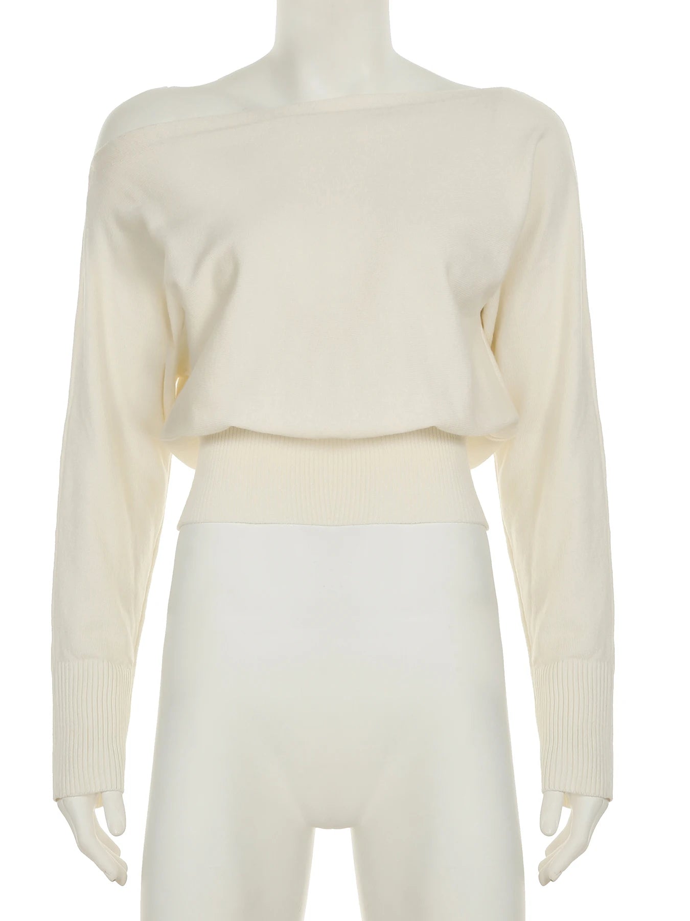Off-Shoulder Knit Sweater – Slash Neck, Loose Fit, Winter 2025